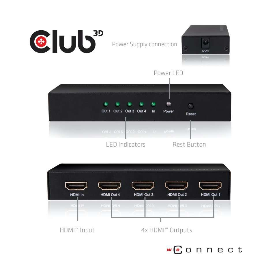 Club3D Rozdeľovač videa 1:4 HDMI 2.0 4K60Hz UHD, 4 porty