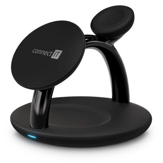 CONNECT IT Bezdrátová nabíječka 3v1 MultiCharge MagSafe pro IPhone, Apple Watch a AirPods, 15 W, Černá