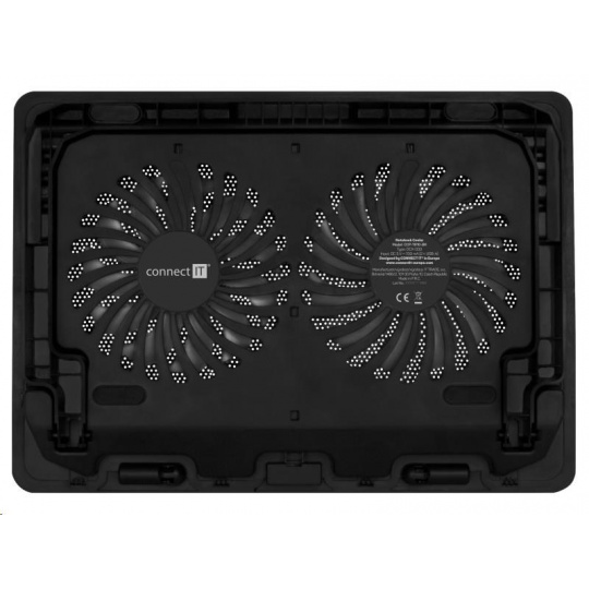 Chladiaca podložka pod notebook CONNECT IT "FrostBreeze" CCP-1910-BK s dvoma ventilátormi s modrým LED podsvietením, celokovovou chladiacou mriežkou a štvorpolohovým nastavením výšky. Kompatibilný s notebookmi do veľkosti 15,6".