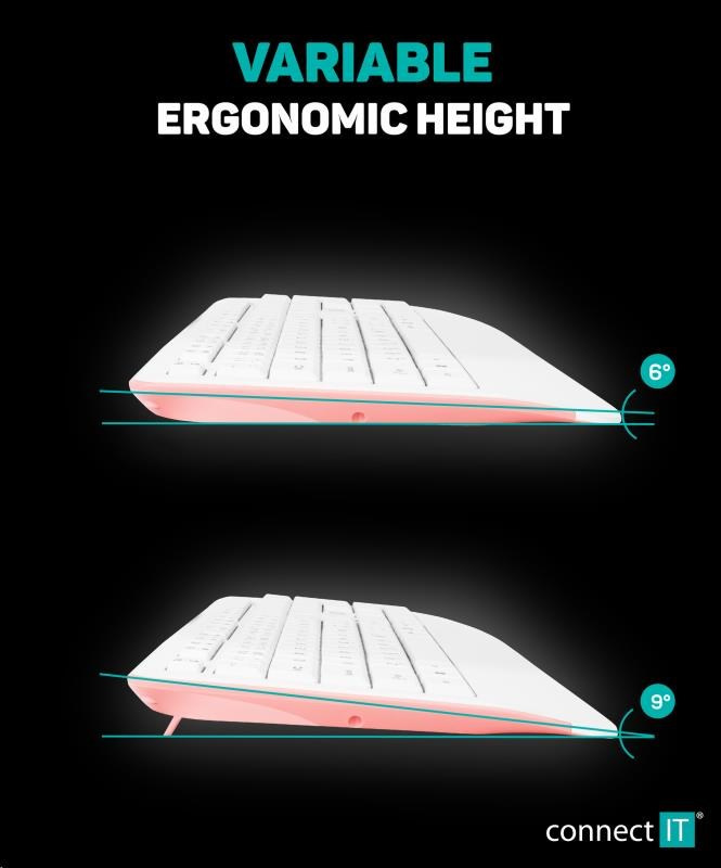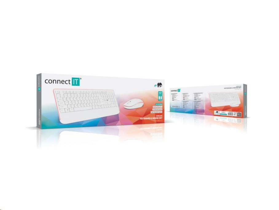 CONNECT IT Combo bezdrôtová bielo-ružová klávesnica + myš, (+1x AAA +1x AA batérie zdarma), CZ + SK rozloženie