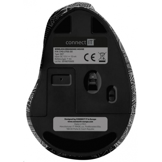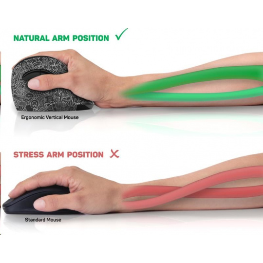 CONNECT IT FOR HEALTH ergonomická vertikálna myš DOODLE, (+ 1x batéria AA zdarma), bezdrôtová