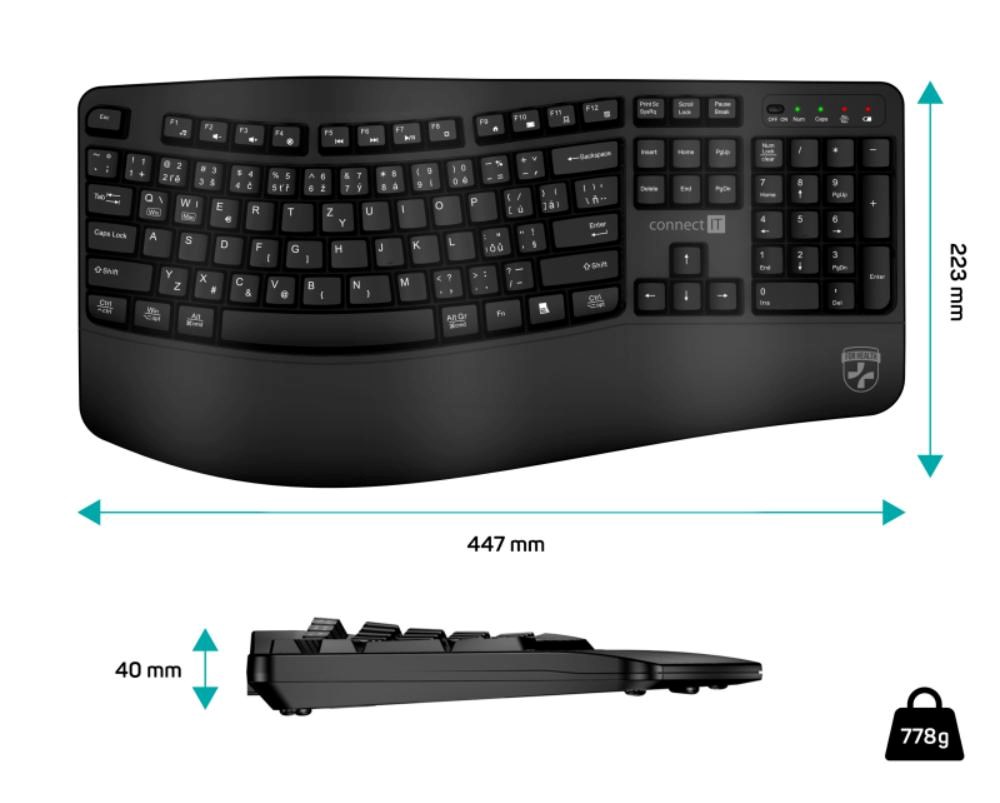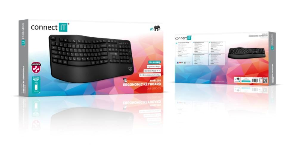 CONNECT IT FOR HEALTH Ergonomická klávesnice ErgoOffice, Bezdrátová, CZ+SK, černá