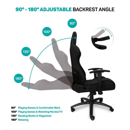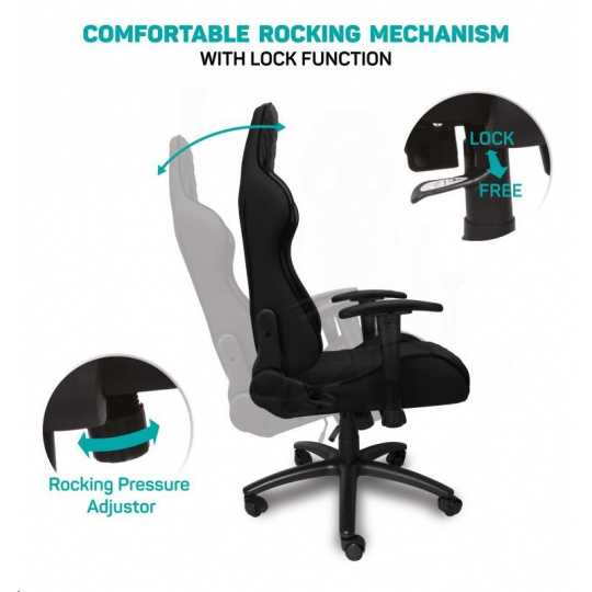 Vyniká luxusným spracovaním, moderným ergonomickým dizajnom a veľmi stabilnou konštrukciou. Mnohoraké nastavenia vyhovujú každej postave. Dizajn bol špeciálne navrhnutý pre dlhodobé sedenie a umožňuje aj bežnú prácu doma i v kancelárii. Ideálne pre mnohohodinové hranie bez kompromisov.