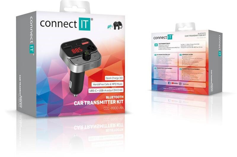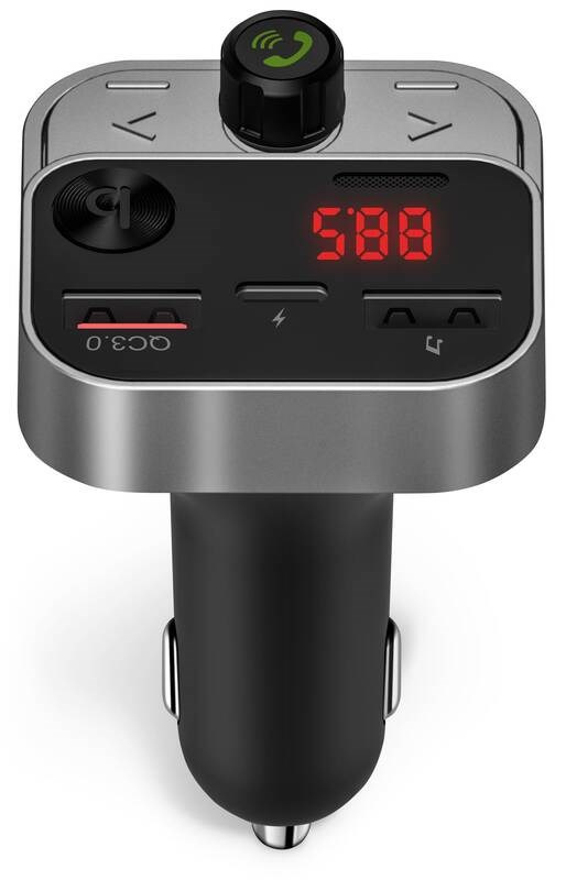 Bluetooth vysielač v kombinácii s trojportovou nabíjačkou je multimodálne zariadenie do vášho automobilu, vďaka ktorému môžete nielen nabíjať mobilné zariadenia, ale aj počúvať hudbu z USB flash disku alebo mobilného telefónu. Vysielač je vybavený digitálnym displejom a štyrmi ovládacími tlačidlami pre jednoduché a komfortné ovládanie všetkých funkcií. Samozrejmosťou tohoto zariadenia je aj možnosť bezdrôtového spárovania s vaším mobilným telefónom pre uskutočňovanie telefonátov. Na tento účel je vybavený aj zabudovaným mikrofónom.