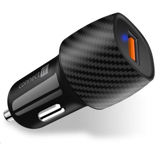 CONNECT IT InCarz QUICK CHARGE 3.0 nabíjačka do auta, 1x USB-A, 3 A, uhlíková