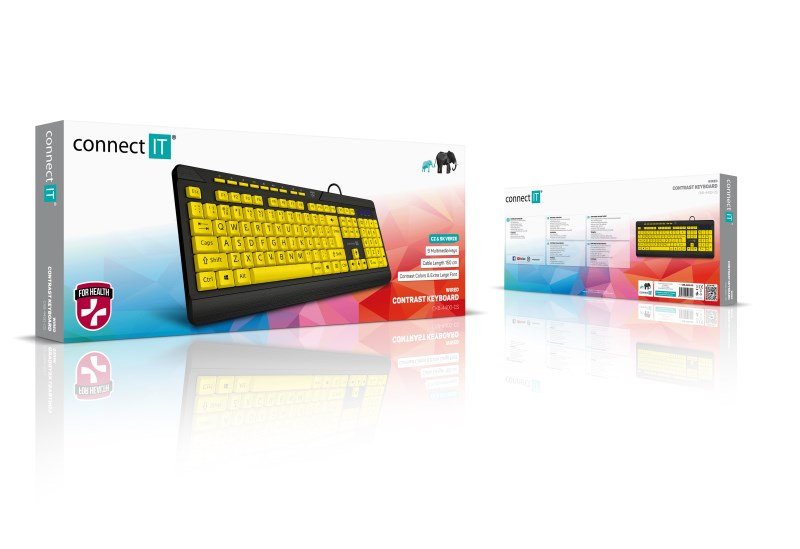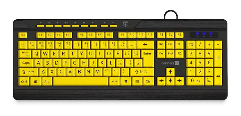 CONNECT IT Klávesnice FOR HEALTH CONTRAST, s velkým fontem, membránová, drátová, CZ/SK, Žluto-Černá
