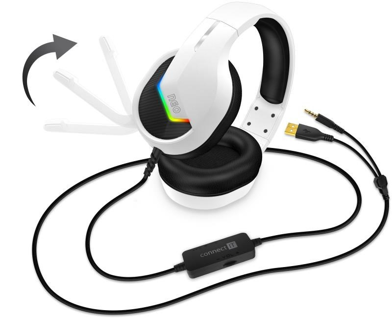 CONNECT IT NEO herní sluchátka s mikrofonem, 1xJack+USB, bílá