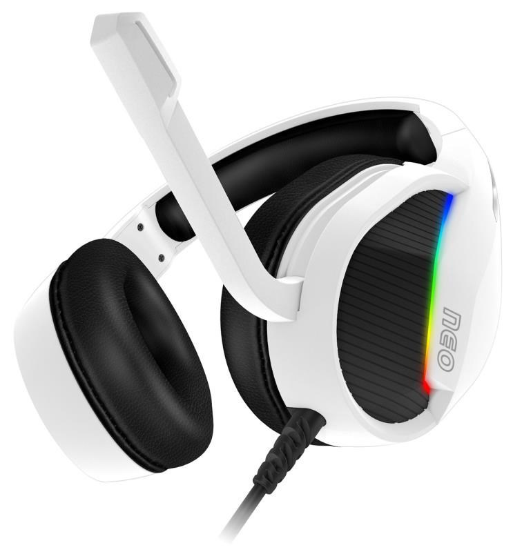 Profesionálne herné slúchadlá s výklopným mikroónom NEO s podsvietením pre hráčov počítačových hier. Slúchadlá sú vybavené RGB Rainbow podsvietením, ovládaním hlasitosti, sklápacím mikroónom a obľúbenými pozlátenými konektormi. V balení nájdete aj adaptér 3.5 mm jack pre maximálnu kompatibilitu a arch promo samolepky hernej rady NEO.
