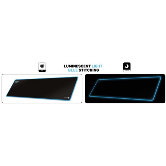 Podložka má mäkký a príjemný povrch. Vďaka hracej ploche 886 x 245 mm vám nikdy nebude chýbať priestor na pohyb. Veľkou výhodou je pogumovaná protišmyková spodná strana a antistatický povrch, na ktorom bude bez problémov jazdiť každá myš. Materiál bol navrhnutý tak, aby odpudzoval vodu a nečistoty. Podložka má okraje obšité špeciálnou vysokokvalitnou svietiacou niťou, ktorá v tme jemne svieti.