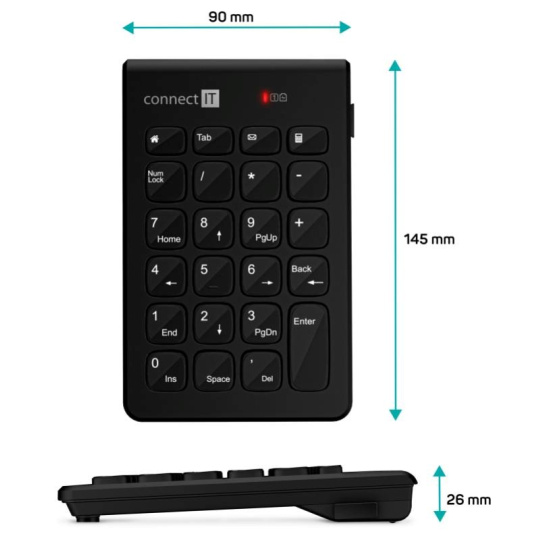 CONNECT IT NumCalc bezdrátová numerická klávesnice, 1x AAA baterie, černá