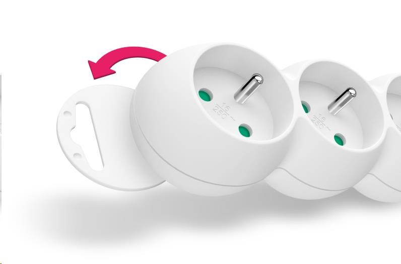 - Detská ochrana pre všetky zásuvky (zásuvky sú prístupné len pri súčasnom vložení oboch vidlíc, takže ich nemožno vložiť jednotlivo, napr.