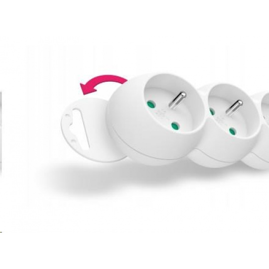 - Detská ochrana pre všetky zásuvky (zásuvky sú prístupné len vtedy, ak sú obe vidlice zasunuté súčasne, takže ich nemožno zasunúť jednotlivo, napr. iba skrutkovač alebo pletacia ihla)