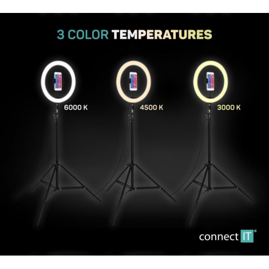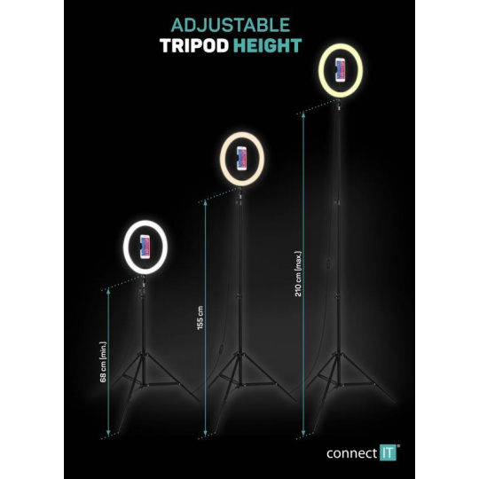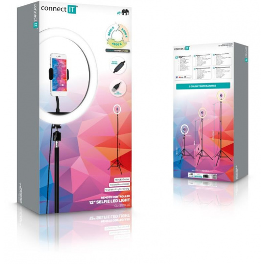 CONNECT IT Selfie12Ring kruhové 12" LED svetlo + statív 2,1 m