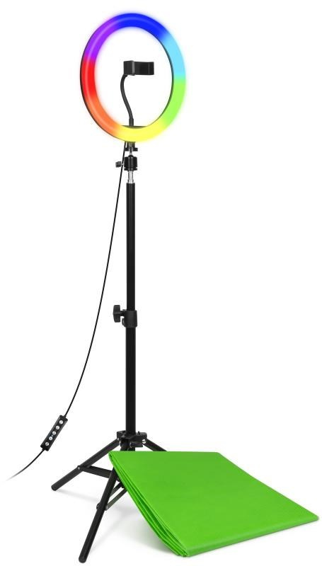 Ak chcete povýšiť svoje videá a fotky na vyššiu úroveň, využite priložený green screen, vďaka ktorému vaša tvorba zaujme unikátnym pozadím a získa originálnu atmosféru. Absolútna sloboda v nastavení požadovaného uhla je garantovaná uchytením svetla pomocou guľovej hlavy. Farebná teplota svetla je možné nastaviť od studenej po teplú v troch úrovniach. Držiak mobilného telefónu umiestnený na flexibilnom husom krku umožňuje pohodlné nastavenie do ľubovoľného uhla snímania fotografií a videí. Vo výbave nechýba diaľkové ovládanie na vypnutie/zapnutie svetla, nastavenie jeho intenzity alebo farebnej teploty.