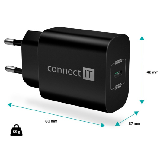 CONNECT IT Voyager2 nabíjecí adaptér 1×USB-C, 25W PD, černá