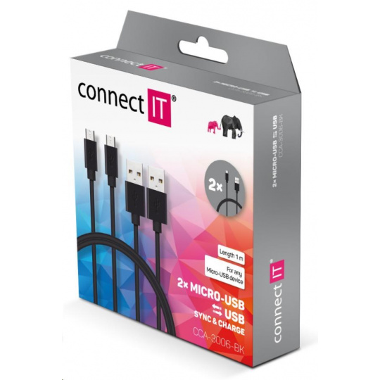 CONNECT IT Wirez Micro USB - USB, čierny, 1 m (2 ks v balení)
