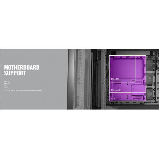 | Veľkosť základnej dosky | E-ATX, ATX, Micro-ATX, Mini-ITX |