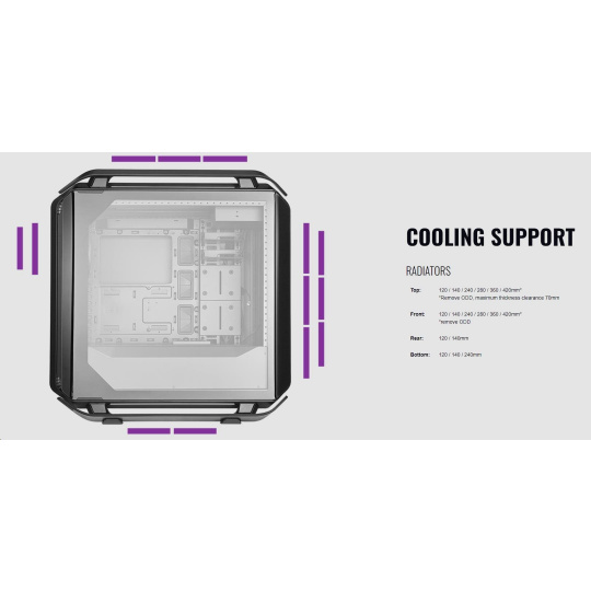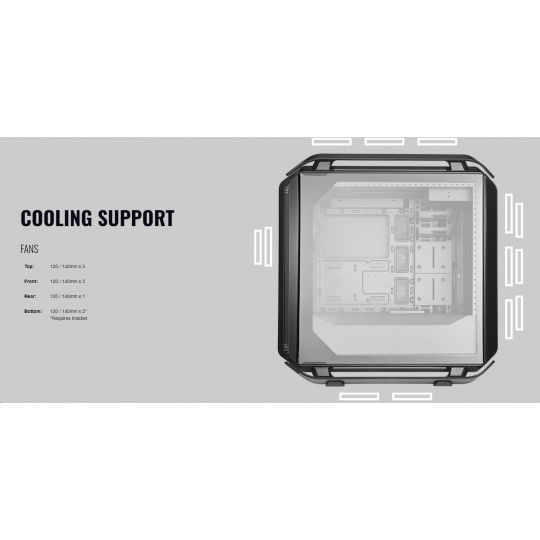 Cooler Master case Cosmos C700P Black, E-ATX, Průhledná bočnice, 3x 140mm Fan, Černá