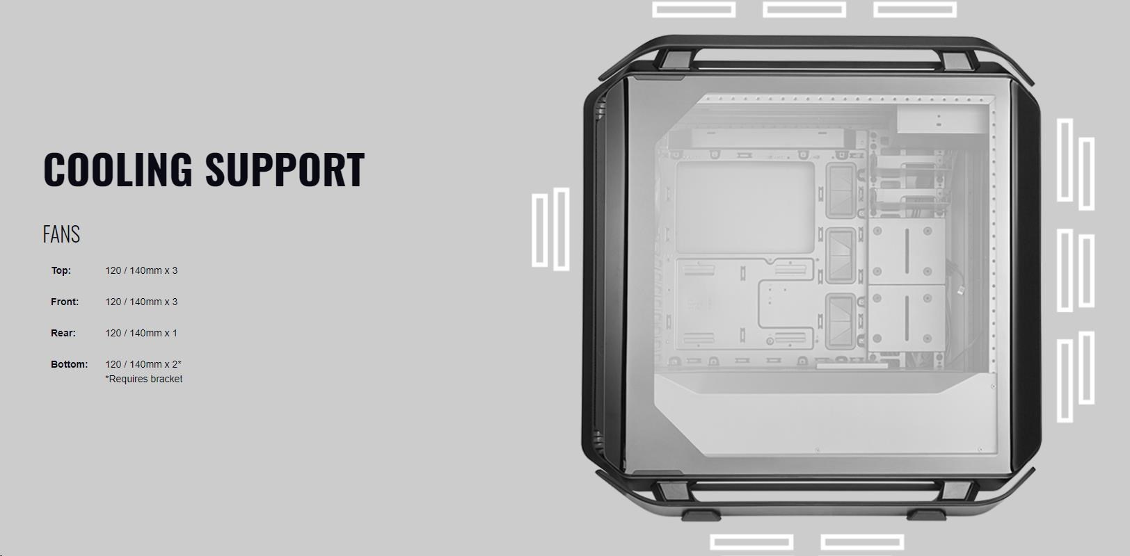 Kryt PSU je modulárny vďaka dvom nezávislým dielom, zatiaľ čo systém krytu káblov obsahuje 3 samostatné diely, z ktorých každý umožňuje montáž úložiska alebo čerpadla pre kapalinové chladenie.