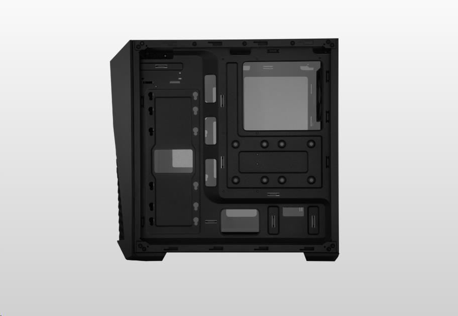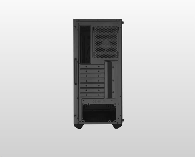 Základom nového MasterBoxu K501L je hranie hier. Osvetlený ventilátor na pozadí šikmého vetrania predného panelu vypovedá o jeho súťažnej stránke.
