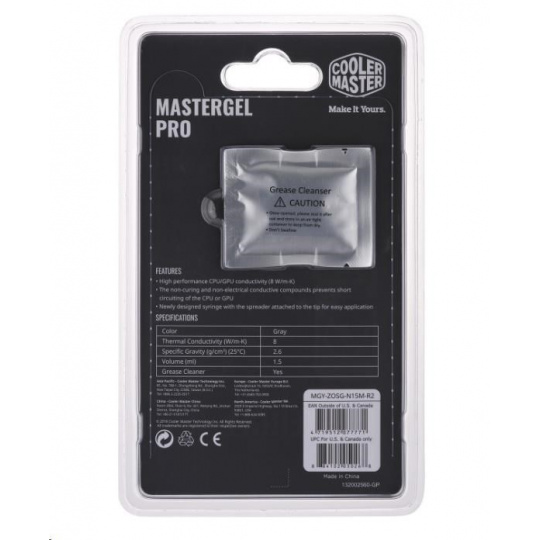 Tepelná pasta Cooler Master pre CPU Master Gel Pro V2, tep. vodivosť 8 W.m, 1.5 ml, 4 g, sivá
