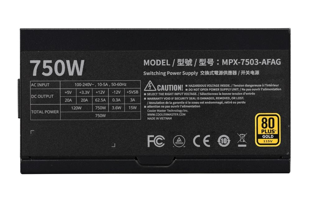 Cooler Master zdroj 750W MWE Gold 3, 120mm, 80+ Gold, Plně modulární, ATX 3.1