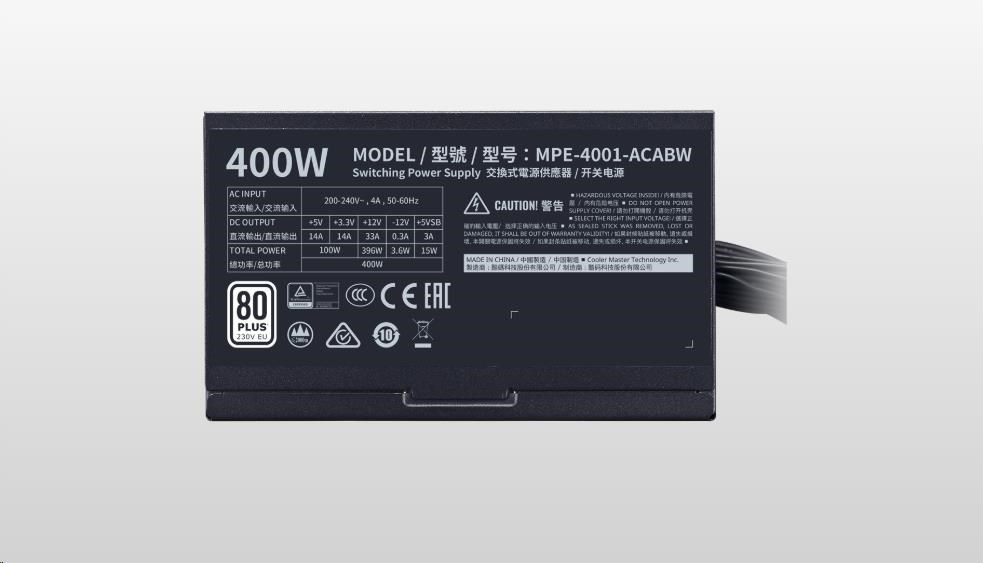 Cooler Master zdroj MWE White 400W V2, 120mm, 80+