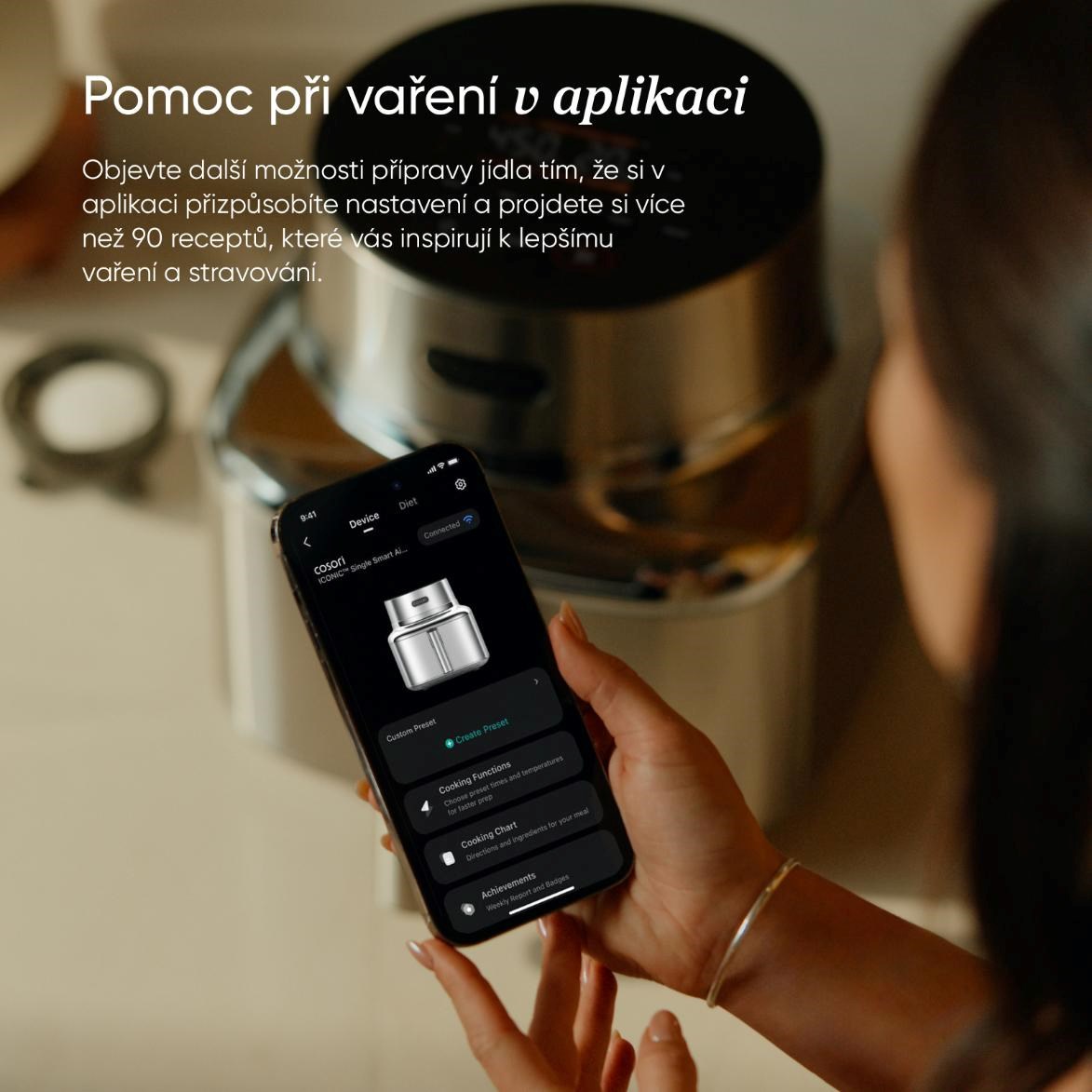 Vďaka inteligentnej aplikácii COSORI máte vždy kontrolu nad varením vďaka upozorneniam na vašom telefóne. Nájdete tu aj recepty, tipy a presné nastavenia pre každé jedlo. Iconic sa stane vaším tichým, ale vždy pripraveným kuchynským pomocníkom.
