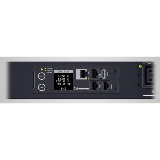 CyberPower PDU81405 je sieťová jednotka distribúcie napájania ideálna pre dátové centrá a podnikové aplikácie, ktorá poskytuje miestne/vzdialené monitorovanie v reálnom čase a ovládanie zapínania/vypínania jednotlivých zásuviek pre vzdialené reštarty, plánované zapnutie/vypnutie a ďalšie. Funkcia Daisy Chain tiež umožňuje monitorovať a ovládať niekoľko PDU pripojených dohromady pod jednou IP adresou.