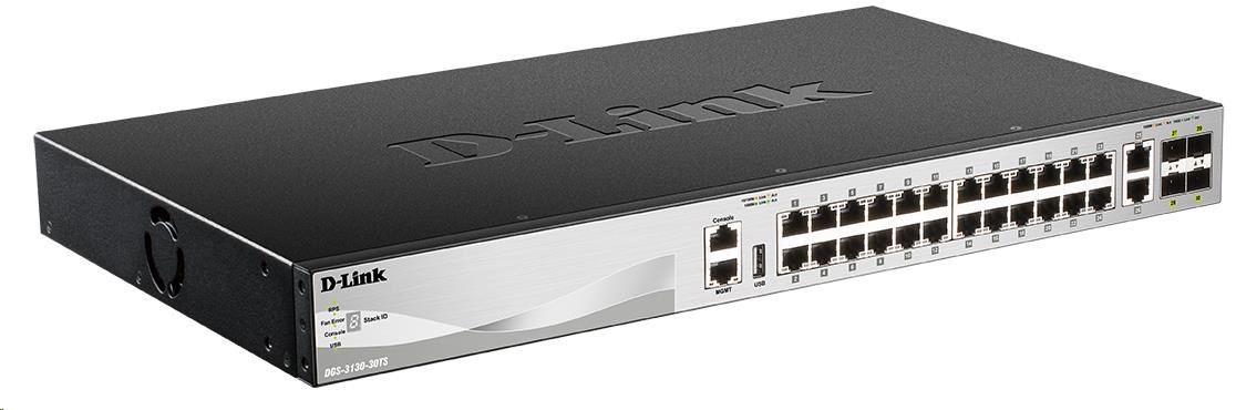 D-Link DGS-3130-30TS/SI L3 Stohovateľný riadený gigabitový prepínač, 24x gigabit, 2x 10GBASE-T, 4x SFP+