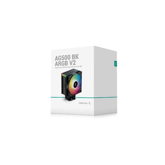 DeepCool AG500 BK ARGB V2 je celokovový jednovrstvový chladič CPU zameraný na vysoký výkon, ktorý sa pýši piatimi teplovodivými rúrami zabalenými v hutnej veži chladiča pre optimálnu odvod tepla a spárovaný s jemne vyladeným 120mm ARGB PWM ventilátorom pre účinné chladenie.