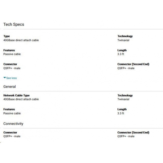 Prehľad  Pasívne pripojené medené kábly poskytujú vysoko spoľahlivé komunikačné spojenia s vynikajúcou bit error rate (BER) výkonom. Tieto medené káble sú navrhnuté ako cenovo výhodná a s nižšou spotrebou energie alternatíva k optickým káblovým súpravám pre krátke vzdialenosti medzi aktívnym sieťovým zariadením.      Hot Pluggable QSFP+ - formát QSFP+     Priamo pripojené medené kábly     Nízka spotreba energie a nízky crosstalk  https://www.dell.com/en-us/work/shop/dell-networking-cable-qsfp-to-qsfp-40gbe-passive-copper-direct-attach-cable-1-meter-kit/apd/470-aavr/networking  Typ: 40GBase priame pripojenie kábel Technológia: Twinaxial Funkcie: Pasívny kábel Dĺžka: 3,3 stôp Konektor: QSFP+ - samec Konektor (druhý koniec): QSFP+ - samec  Kompatibilita  Tento produkt je kompatibilný s nasledujúcimi systémami:      Dell EMC Networking N2200-ON     Dell EMC PowerSwitch Z9264F-ON     Dell EMC PowerSwitch Z9332F-ON     Dell EMC PowerSwitch Z9432F-ON     Dell Networking N3132PX-ON     Dell Networking S4112-ON     Dell Networking S4128     Dell Networking S4148     Dell Networking S4148U     Dell Networking S5212F-ON     Dell Networking S5224F-ON     OptiPlex GX260 MT     PowerEdge C4140     PowerEdge C6420     PowerEdge FC640     PowerEdge M640     PowerEdge M640 VRTX     PowerEdge R240     PowerEdge R340     PowerEdge R440     PowerEdge R540     PowerEdge R640     PowerEdge R6415     PowerEdge R740     PowerEdge R740XD     PowerEdge R740xd2     PowerEdge R7415     PowerEdge R7425     PowerEdge R7515     PowerEdge R7525     PowerEdge R840     PowerEdge R940     PowerEdge R940xa     PowerEdge T140     PowerEdge T340     PowerEdge T440     PowerEdge T640     PowerEdge XR2     PowerVault NX440