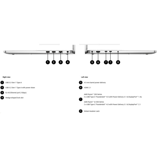 | 3-cell, 45 Wh, ExpressCharge™ Capable, ExpressCharge™ Boost Capable, 65W AC adapter, USB Type-C |