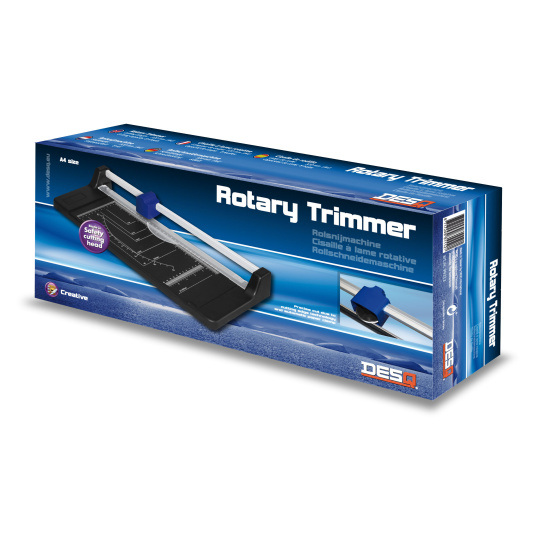 Odolná rotačná rezačka na presné rezanie papiera a lepenky. ? Rotačná a spodná čepeľ pevne pripevnené k pracovnej doske ? Rez až 8 listov papiera naraz ? Zobrazené štandardné formáty A pre jednoduché zarovnanie ? Uhlová stupnica pre presné rezanie pod uhlom Dokonalý nástroj do kancelárie, školy aj na domáce kreativné projekty.