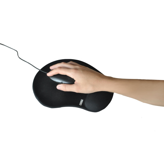 Ergonomická gélová podložka pod myš s opierkou zápästia pomáha udržiavať zápästie v správnej polohe počas používania myši. ? Prostorný dizajn – minimalizuje napätie v ruke a umožňuje plynulejší pohyb myši ? Protisklzová spodná strana – zabezpečuje pevné uchytenie podložky na stole ? Ergonomická gélová opierka zápästia – poskytuje stálu podporu a znižuje nepohodlie pri dlhodobom používaní Podpera zápästia s gélovou výplňou sa prirodzene prispôsobí vášmu zápästiu, čím poskytuje osobný komfort. Zvýšená opierka podporuje zdravé ergonomické držanie ruky a znižuje záťaž zápästia pri dlhodobej práci s myšou.