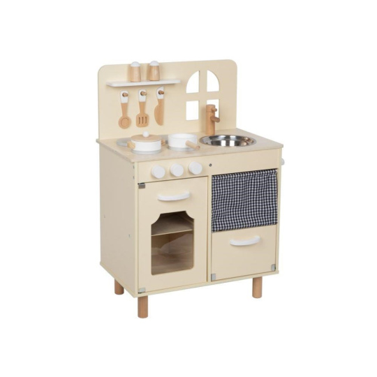 Detská kuchynka v jemných pastelových farbách, so spotrebičmi, príslušenstvom a okienkom, nadchne každého malého kuchára a gazdinku. V detskej kuchynke si deti môžu vyskúšať varenie, pečenie, umývanie riadu, chystanie pokrmov bezpečným detským spôsobom. Pri hre v detskej drevenej kuchynke si deti zdokonalia svoje zručnosti a ešte si užijú veľa zábavy.