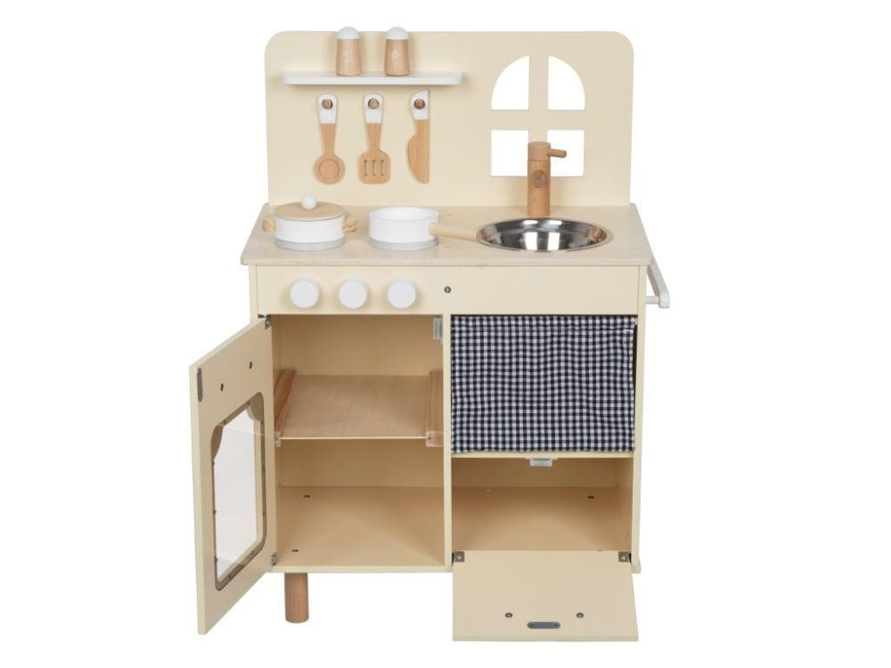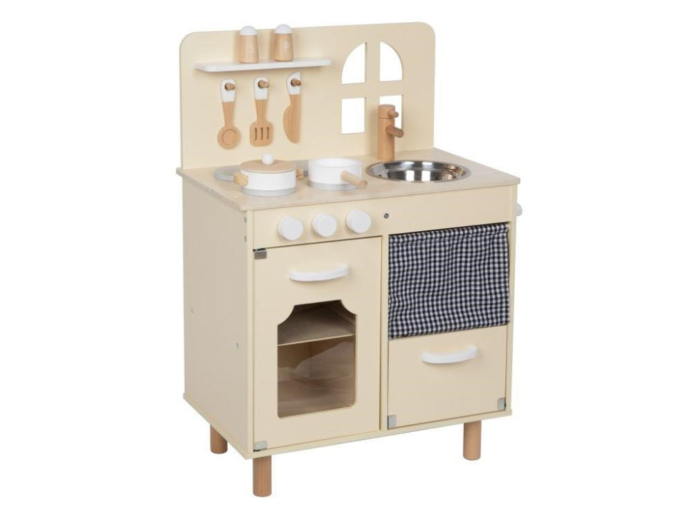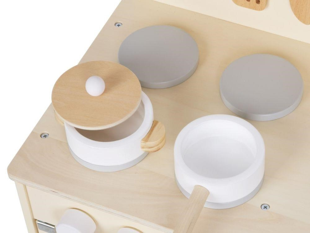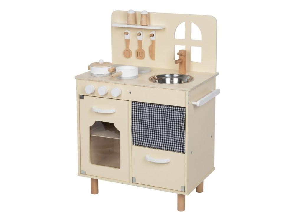 Detská kuchynka v jemných pastelových farbách, so spotrebičmi, príslušenstvom a okienkom, nadchne každého malého kuchára a gazdinku. V detskej kuchynke si deti môžu vyskúšať varenie, pečenie, umývanie riadu, chystanie pokrmov bezpečným detským spôsobom. Pri hre v detskej drevenej kuchynke si deti zdokonalia svoje zručnosti a ešte si užijú veľa zábavy.