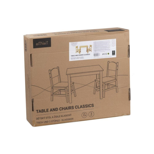 Detský stolík a 2 stoličky, v klasickom dizajne, je krásnym a praktickým setom detského nábytku do detskej izby, kuchyne, jedálne aj herného kútika. U stolíka si môžu deti maľovať a kresliť, tvoriť, prehliadať obľúbené knihy, hrať si alebo si dať olovrant. Detský stôl a stoličky v prírodnom (natur) prevedení je vhodný pre dievčatká aj chlapcov, do každého interiéru.