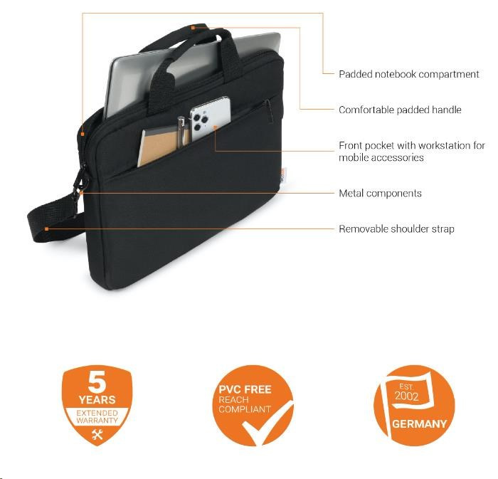 Popis produktu Váš notebook doručí na miesto určenia bezpečne s tenkým puzdrom BASE XX. Hlavná priehradka je vybavená mimoriadne hrubým vypchávkou, čo znamená, že vaše zariadenie je úplne chránené pred nárazmi a otrasmi. Dokumenty a mobilné príslušenstvo, ako je váš smartfón, vizitky, perá a podobne, sú vždy ľahko dostupné v priehradke so zipsom na prednej strane. Nastaviteľný a odnímateľný ramenný popruh a držadlo robia tašku veľmi ľahko prenosnou. BASE XX kladie dôraz na odolnosť produktu s predĺženou päťročnou zárukou. Vypchávačná priehradka na notebook Vrecko na prednej strane s pracovnou plochou pre mobilné príslušenstvo Všetky strany vypchávky pre extra ochranu Vyššia kvalita kovových komponentov Pohodlné držadlo a odnímateľný ramenný popruh Obrázok sa môže mierne líšiť od originálu Ďalšie informácie Rozmery produktu 360 x 260 x 35 mm EAN 7640186417259 Materiál 300Dx300D Polyester Farba piesková hnedá