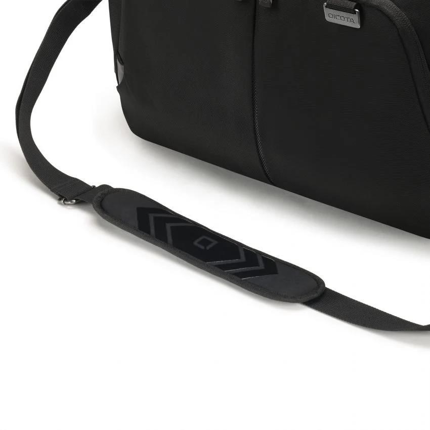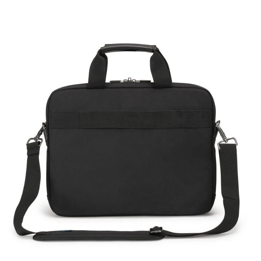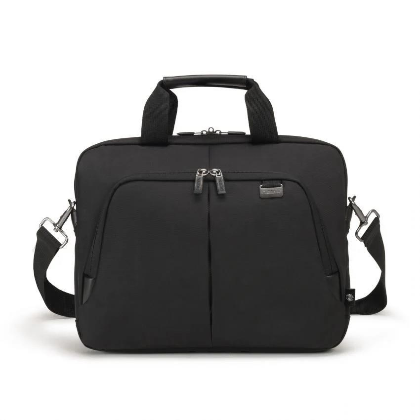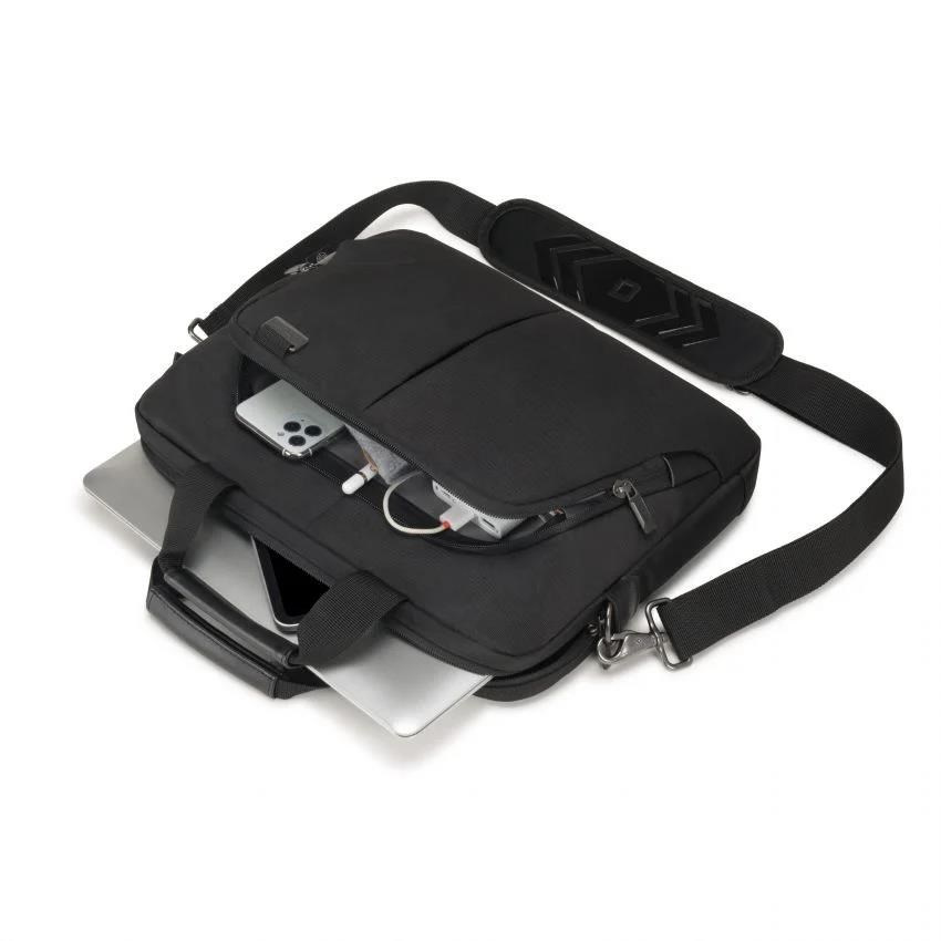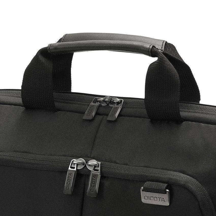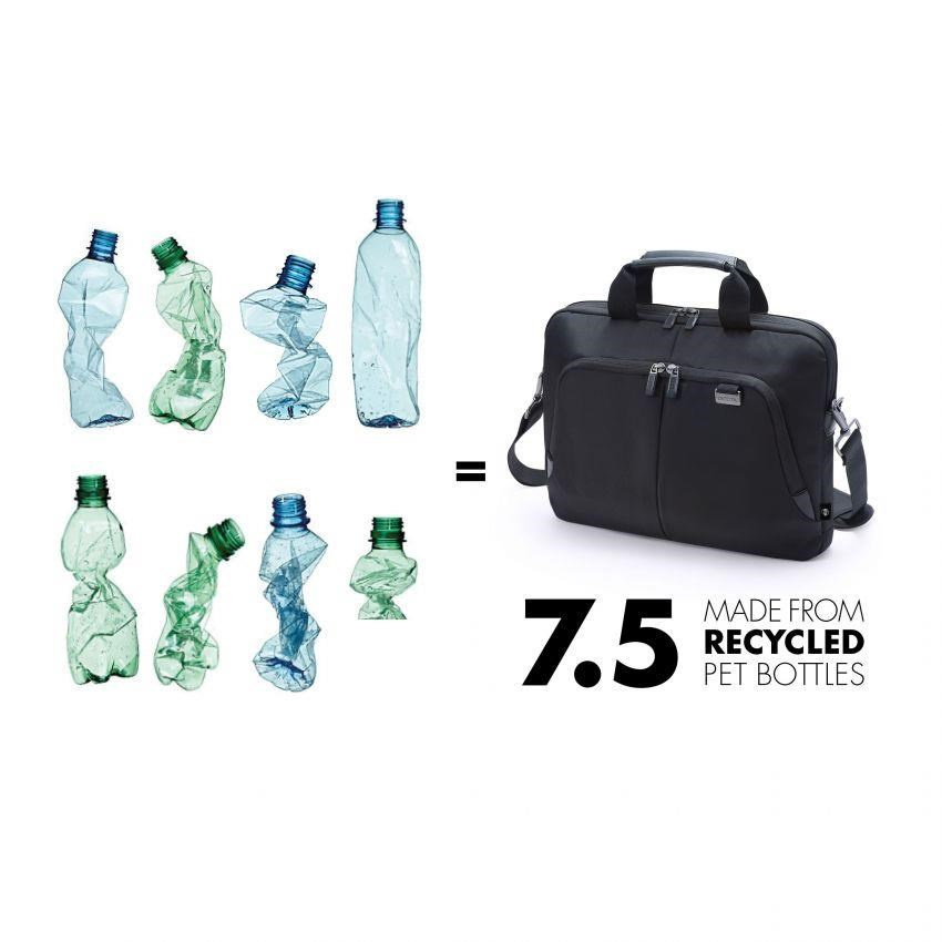DICOTA is an official participant in the Microsoft Designed for Surface program, which certifies exceptional accessories created by third-party manufacturers to work seamlessly with Surface devices. The Eco Slim Case PRO reliably accompanies you everywhere and meets the highest standards in terms of quality, functionality and protection. The fit-all system separating wall in the notebook compartment lies protectively around your Microsoft Surface device and fits automatically to sizes up to 15". The perforated and thus light EVA foam material optimally protects the edges of your notebook. The high-quality genuine leather handles ensure comfortable transportation for daily use. Besides the notebook compartment, the Eco Slim Case PRO features a well-padded slip pocket designated to tablets up to 10.5". Furthermore, the bag offers generous storage space for documents at the back of the case. The front pocket allows you to organize your personal equipment and additional mobile accessories. With its trolley fastening strap, the bag ensures perfect comfort when travelling along with luggage. The Eco Slim Case PRO is perfect for you if you are always on the go and want to support the recycling of PET bottles with an eco-friendly case. Made of 7.5 recycled PET bottles Compatible with any Surface Pro, Pro X, Laptop, Go, Laptop Go, Laptop SE, Book, Laptop Studio as well as Duo Lockable and cushioned notebook compartment with fit-all system and anti-slip technology Maximum security thanks to Memory Foam and EVA frame protection Notebook compartment for Surface devices up to 15" Cushioned pocket for tablets up to 10.5" Spacious front pocket with zip-pocket and workstation for mobile accessories Open document compartment on the rear High-quality metal features Adjustable shoulder strap with comfortable padding and anti-slip technology Comfortable carry handles made of real leather Trolley belt More Information More Information Item number D30990-DFS Color black Volume in liters 0 Material 900Dx600D rPET Polyester Warranty Lifetime / 30 years EAN 7640186417709 Max. Device Measurements (mm) 340 x 40 x 245 mm 13.39 x 1.57 x 9.65 inch Product Measurements (mm) 375 x 80 x 285 mm 14.76 x 3.15 x 11.22 inch Weight 0.71 kg / 1.56 lbs.