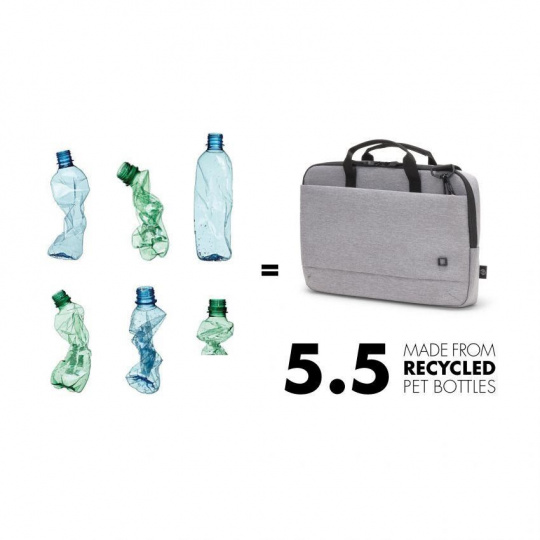 Puzdro na notebook Slim Eco MOTION 14 - 15.6" svetlo sivé ľahké puzdro na notebook s ochranným polstrovaním Dnešné činy formujú zajtrajší svet. Preto sa v spoločnosti DICOTA venujeme vývoju riešení šetrných k životnému prostrediu, a preto všetky predmety v našich kolekciách ECO vyrábame z udržateľného recyklovaného PET. Opakovane používame až 31 PET fliaš, takže dostanete ekologický výrobok s doživotnou zárukou. Aj naše výrobky z PET majú kvalitu, vzhľad a povrchovú úpravu, ktoré poznáte a máte radi. Špecifikácie Art.no.: D31873-RPET EAN: 7640186418188 Hmotnosť: 0.6 kg Materiál: 600D RPET Polyester Záruka: doživotná / 30 rokov Rozmery: 405 x 45 x 290 mm Max. Rozmery zariadenia: 385 x 30 x 265 mm Charakteristika - Vyrobené z 5.5 recyklovaných PET fliaš - Polstrovaná priehradka na notebook s penou vysokej hustoty (HDF) - Vrecko na tablet do 12.9" - Predné vrecko s úložným priestorom na mobilné príslušenstvo - Priehradka na dokumenty na zadnej strane - Pohodlná polstrovaná rukoväť - Odnímateľný, nastaviteľný ramenný popruh - Vodoodpudivý materiál..