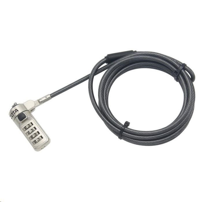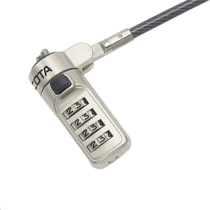 Bezpečnostný káblový klinový zámok DICOTA, prednastavený kód, 3.2x4.5 mm štrbina