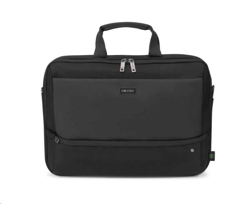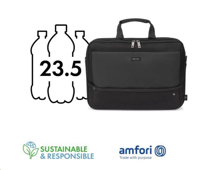 Taška Top Traveller FIVE je navrhnutá tak, aby chránila vaše zariadenie a zároveň vám umožnila jednoduchý prístup k nevyhnutnostiam. Uzamykateľná priehradka na notebook s ochranou DCT Notebook Protection a polstrovaním rohov z HDF peny a EVA zabezpečuje maximálnu bezpečnosť, zatiaľ čo integrovaná kapsa poskytuje bezpečné uloženie tabletov do veľkosti 12,9". Hlavná priehradka ponúka dostatok priestoru pre dokumenty, priečinky alebo mobilné vybavenie a predná časť obsahuje usporiadané kapsy na príslušenstvo. Malá predná kapsa poskytuje ďalší úložný priestor pre káble a menšie predmety. Vyrobené z 23,5" recyklovaných PET fliaš.