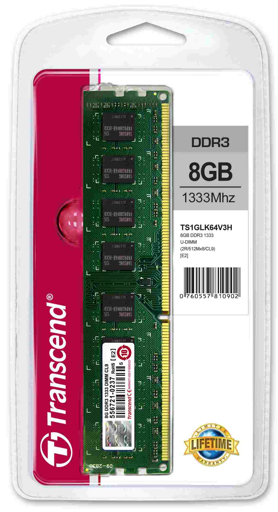 TRANSCEND 2Rx8 CL9 DDR3 8GB 1333MHz DIMM