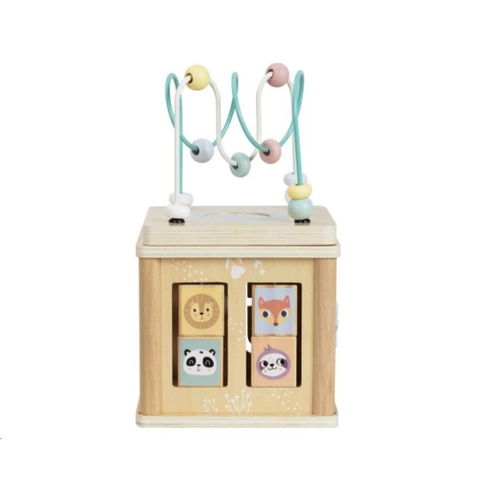 Drevená kocka s aktivitami predstavuje hneď 5 hračiek v jednej. Každá strana aktivity kocky je originálna, prináša nové dobrodružstvo a zdokonaluje detské zručnosti. Herné prvky, pastelové farby a zvieratká z lesa aj zo ZOO motivujú deti ku hre a dôslednému preskúmavaniu. Deti pri hre s activity cube zdokonaľujú motorické zručnosti, koordináciu, logické myslenie, učia sa sústrediť a trpezlivosti.
