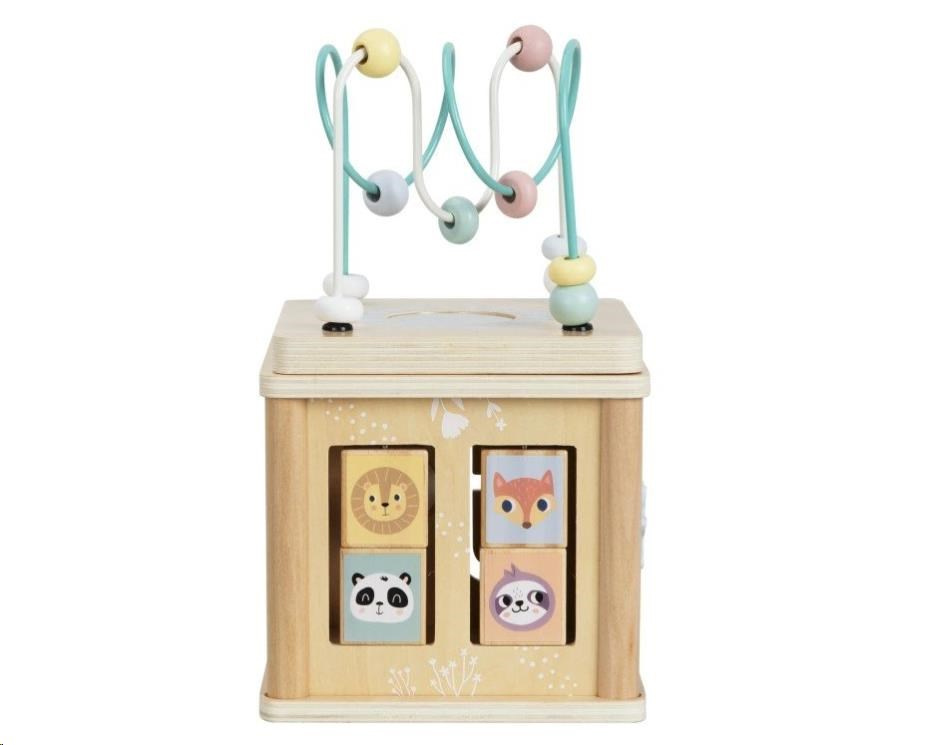 Drevená kocka s aktivitami predstavuje hneď 5 hračiek v jednej. Každá strana aktivity kocky je originálna, prináša nové dobrodružstvo a zdokonaluje detské zručnosti. Herné prvky, pastelové farby a zvieratká z lesa aj zo ZOO motivujú deti ku hre a dôslednému preskúmavaniu. Deti pri hre s activity cube zdokonaľujú motorické zručnosti, koordináciu, logické myslenie, učia sa sústrediť a trpezlivosti.