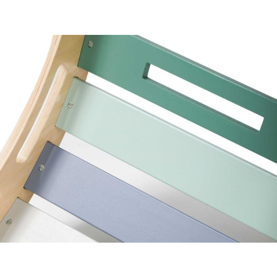 Veľká drevená montessori hojdačka 5v1, s doskami v jemných pastelových farbách, je zábavnou hračkou pre malé aj väčšie deti, ktorú využijú pri pohybových aktivitách aj pri hre. Montessori hojdačka max umožní deťom príjemne sa pohupovať, skvele poslúži ako preliezačka, šmýkačka, skrýša, most, stolička alebo predajný pultík pri hre na obchod. Hojdačka prirodzene rozvíja motorické zručnosti a je vhodná pre deti už od 1 roka.
