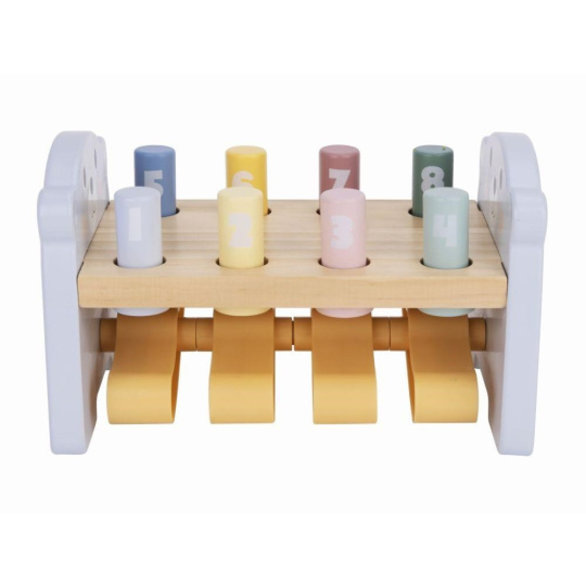 Zatláčačka pre deti je klasická drevená hračka, ktorá poteší každé dieťa. Drevená zatláčačka v krásnych farbách, s roztomilým medvídkom, s očíslovanými valčekmi a malou vychytávkou rozvíja detské zručnosti, naučí deti spoznávať farbičky aj číslice.