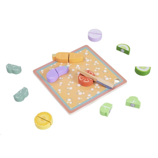 Drevená krájacia zelenina je skvelým doplnkom do detských kuchyniek aj obchodíkov. S krájacou zeleninou sa deti môžu pustiť do varenia, prípravy raňajok alebo desiaty pre svoje obľúbené hračky, kamarátov aj rodičov. Deväť druhov zeleniny, ktorú deti poznajú zo záhradky, z domova alebo z obchodu, je rozdelených na polovice, ktoré drží len suchý zips. Stačí vziať drevený nožík do ruky a na správnom mieste zeleninu rozkrojit. Súčasťou balenia je krásna krájacia doska (destička) aj drevený nôž. Krajacia zelenina je obľúbenou detskou hračkou, vďaka ktorej si deti môžu vyskúšať krájanie nožom bezpečným, detským, spôsobom.