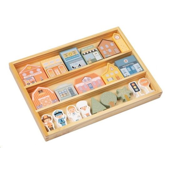 Dřevěné kostky město - domy, postavičky a další doplňky